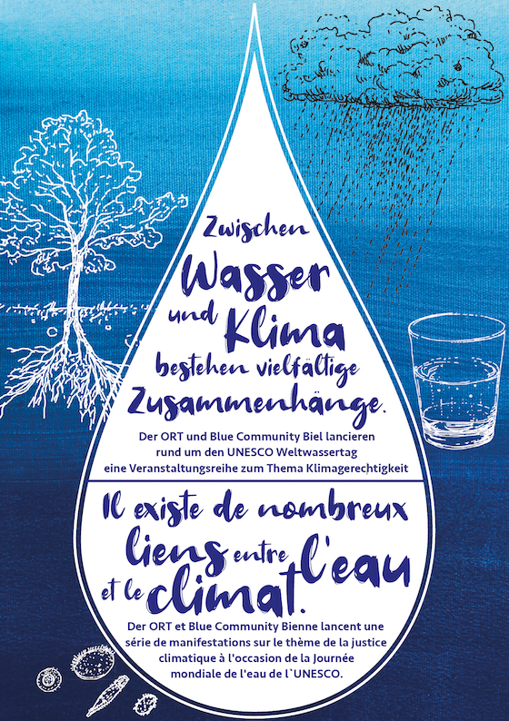 Biel , SchweizAm 22. März findet der Weltwassertag statt. In diesem Themenzyklus soll das Thema Wasser im Zusammenhang mit der Klimakrise beleuchtet werden. Wirtschaftliche und systemische Zusammenhänge wollen wir weltweit und lokal angehen und Ansätze des persönlichen Handelns aufzeigen.